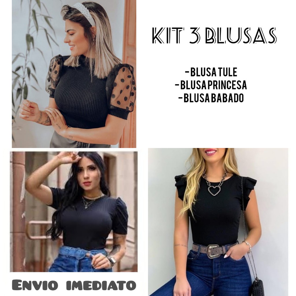 Kit 3 Blusa Preta Para Trabalhar Lisa B sica Blusinha Barata