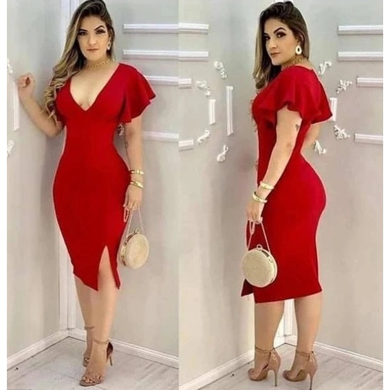 Vestido midi festa casamento madrinha manga babado Shopee Brasil