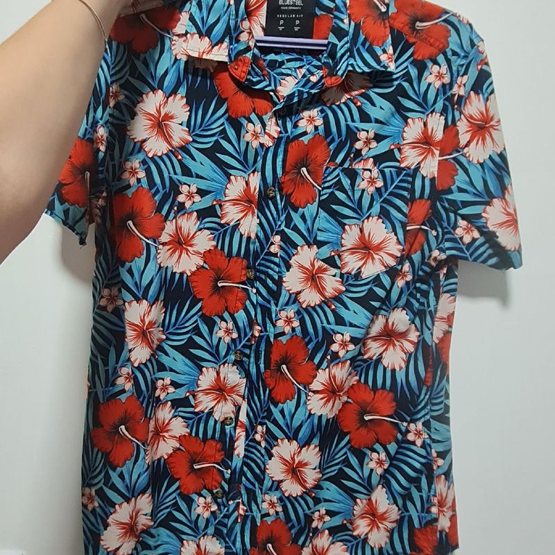 Camisa Florida Azul e Rosa Camisa Feminina Renner Usado 81185013