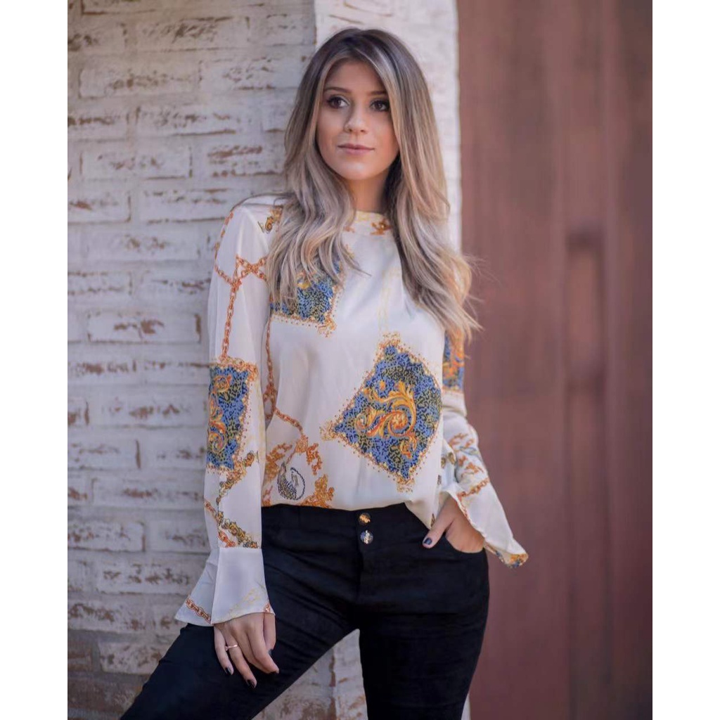 Blusa estampada feminina clearance 2019, camisa feminina blusa camisa manga longa camisa estampada MX1193 clearance