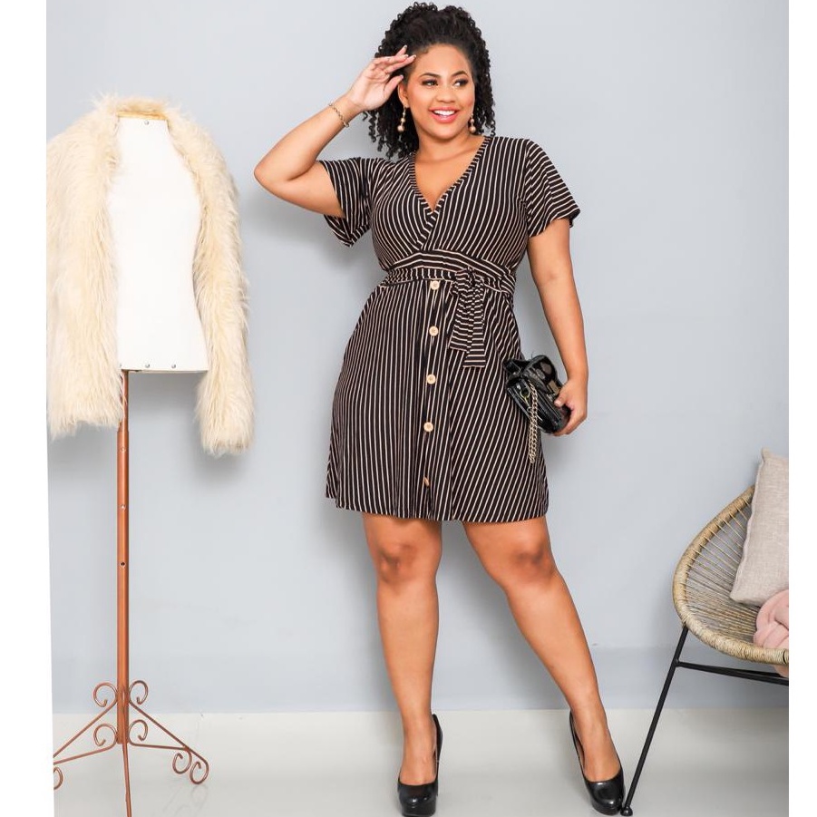 Vestido Plus Size Soltinho Listrado Malha Viscolycra