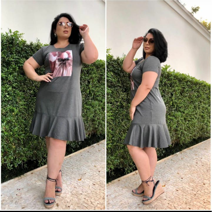 Vestido com babado na barra clearance plus size, Vestido Feminino Babado Na Barra Com Desenho Gg Plus Size Shopee clearance