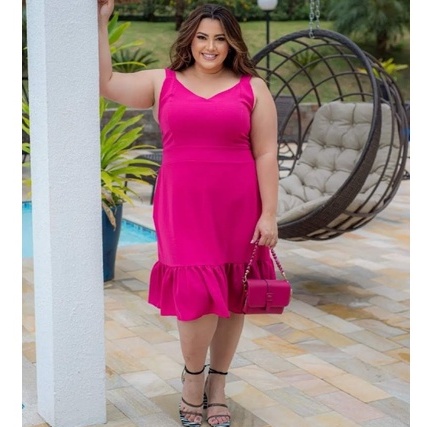 Vestido Plus Size feminino com Babado na Barra e al a larga