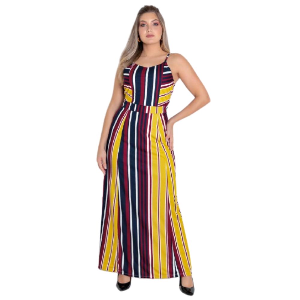 Vestido Longo Plus Size Gospel Gordinha Feminino Listrado Moda