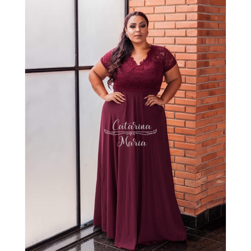 Vestido para madrinha de clearance casamento marsala plus size, Vestido de madrinha Plus size MARSALA tamanhos especiais EF clearance