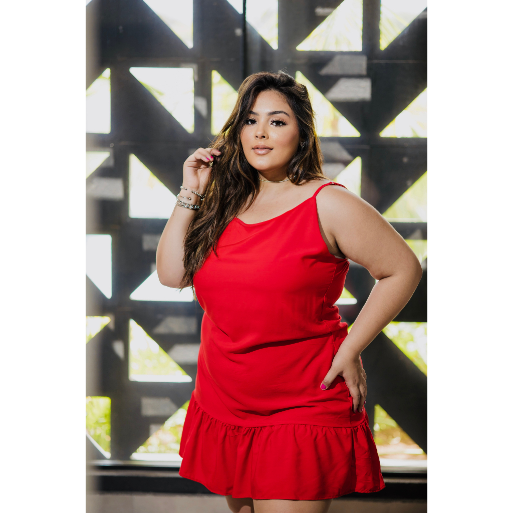 Vestido feminino plus size curto babado alcinha moda plus size