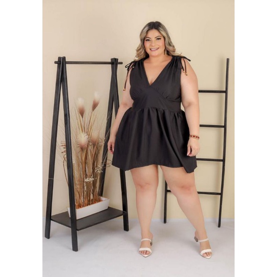 Vestido Curto Rodado Sig Estilo Plus Size Flare Preto em Promo o