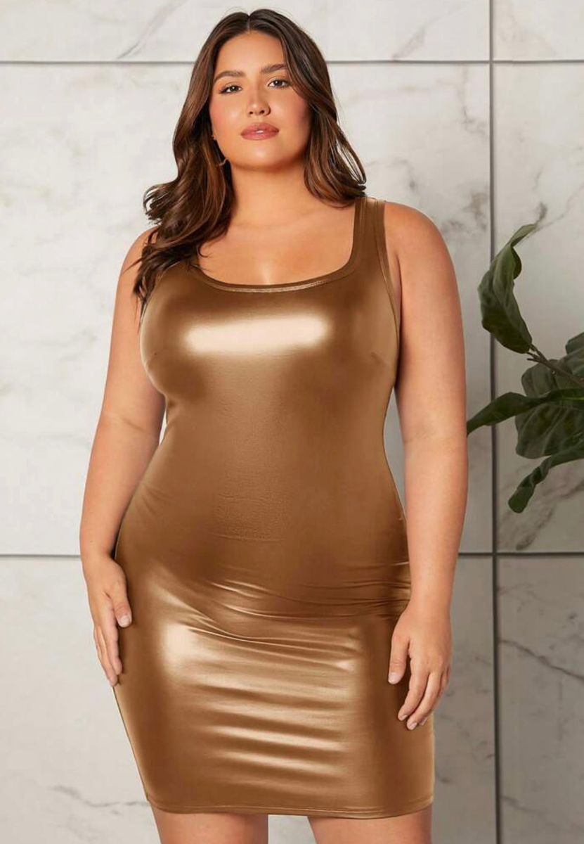 Vestido Dourado em Cirr Plus Size Vestido Feminino Shein Nunca
