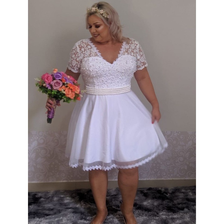Vestido Casamento Civil Plus Size Branco Manga Curta Vestidos