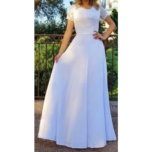 Vestido Casamento Civil Longo Rodado Renda Manga Curta N485