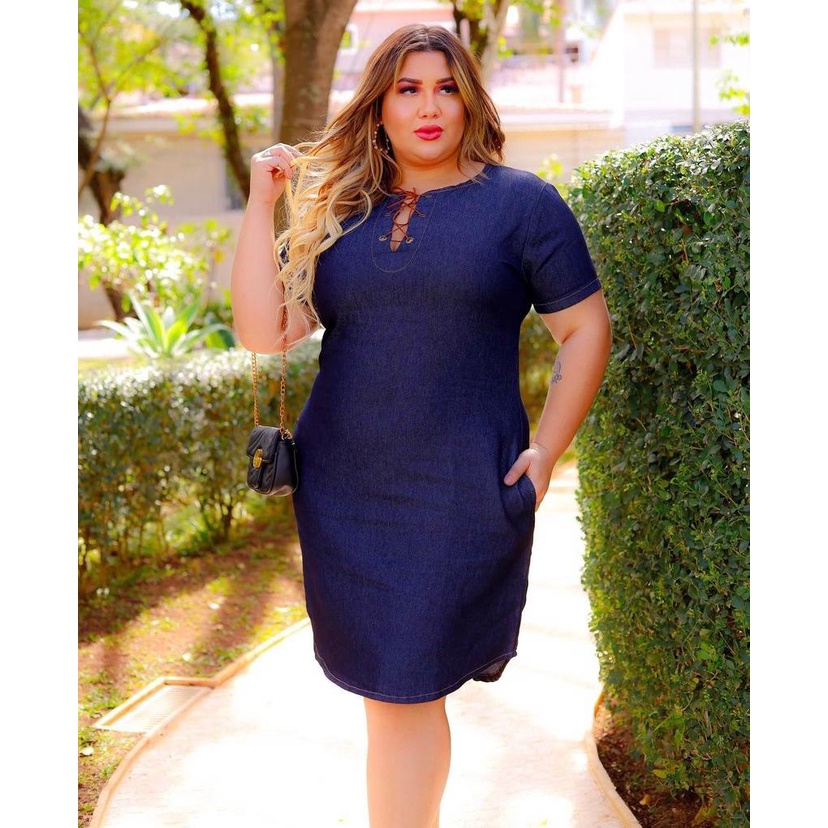 Vestido clearance plus jeans, vestido femino Jeans Plus Size de amarrar na frente c bolso. TAMANHO 52 54 E 56 clearance