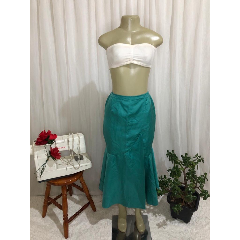 Saia clearance babado gode, Saia Midi Sereia Babado God De Cetim Verde Esmeralda Tamanho P clearance