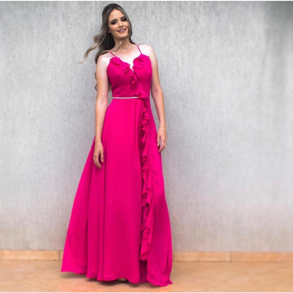 Vestido de Festa Longo em Crepe Ombro S Victoria s Fashion