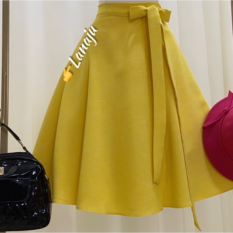 Saia Elegante Rodada Envelope Midi Gode Amarela Moda Feminina Evang lica Modesta Executiva Social