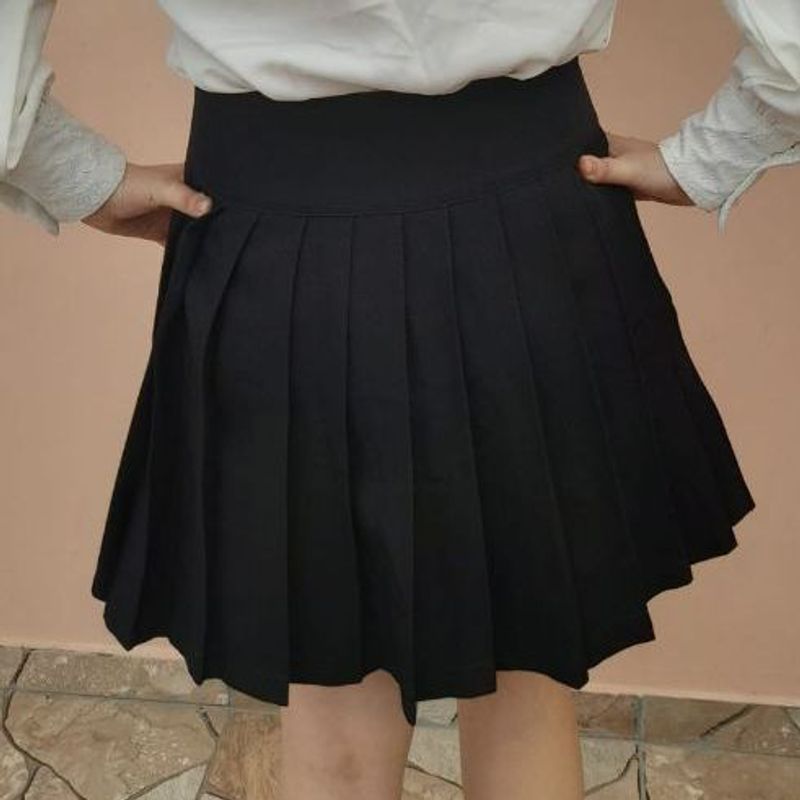 Saia Rodada Preta Colegial Pregueada Mulheres Meninas Mini Saia