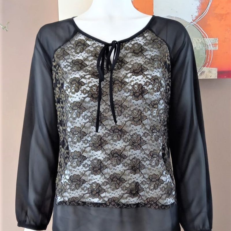 Blusa social feminina clearance c&a, Blusa Social Preta com Dourado Blusa Feminina Clock House Usado clearance