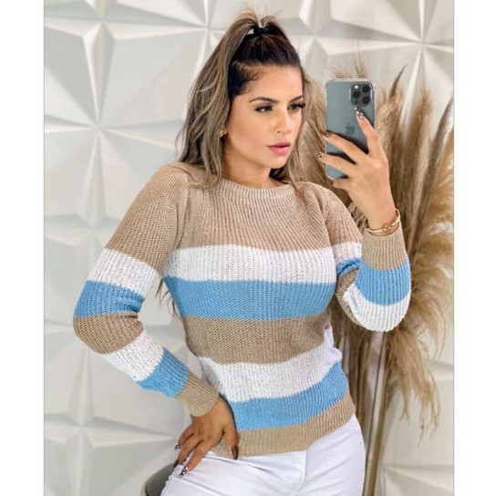 Blusa Blusinha Modinha Tricot Tricolor Inverno 2021 Shopee Brasil