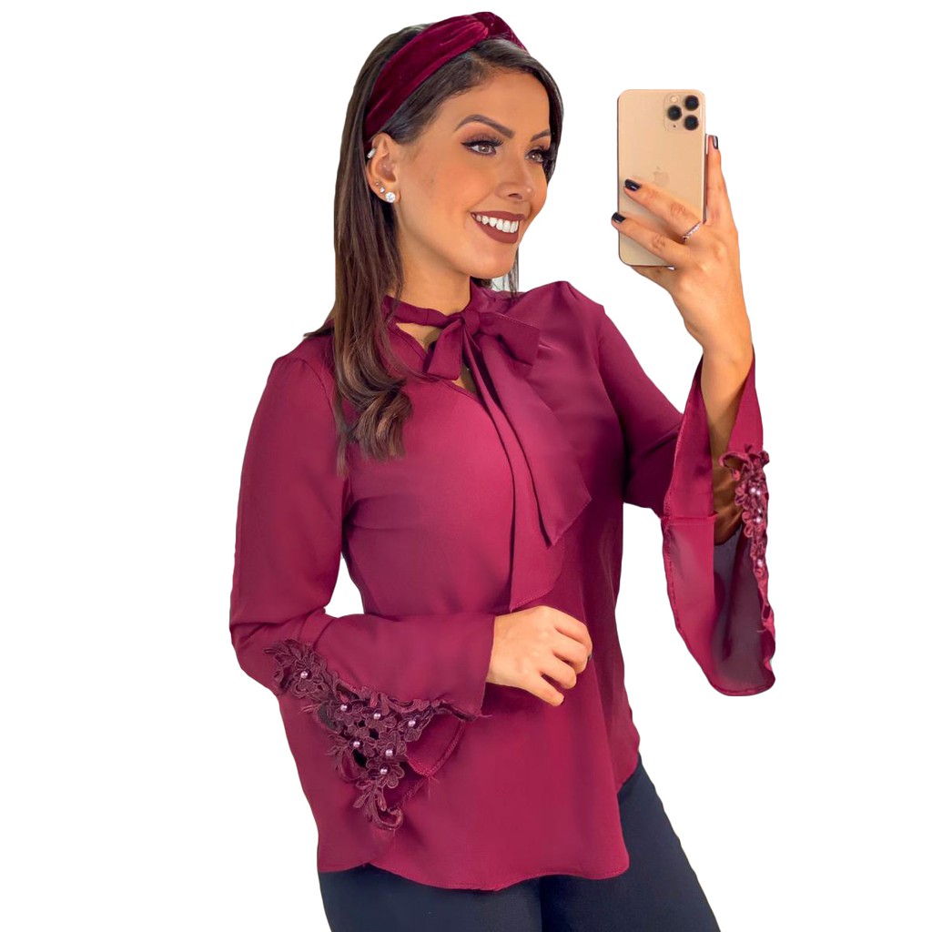 Blusa Social Manga Longa Moda Evang lica Feminina