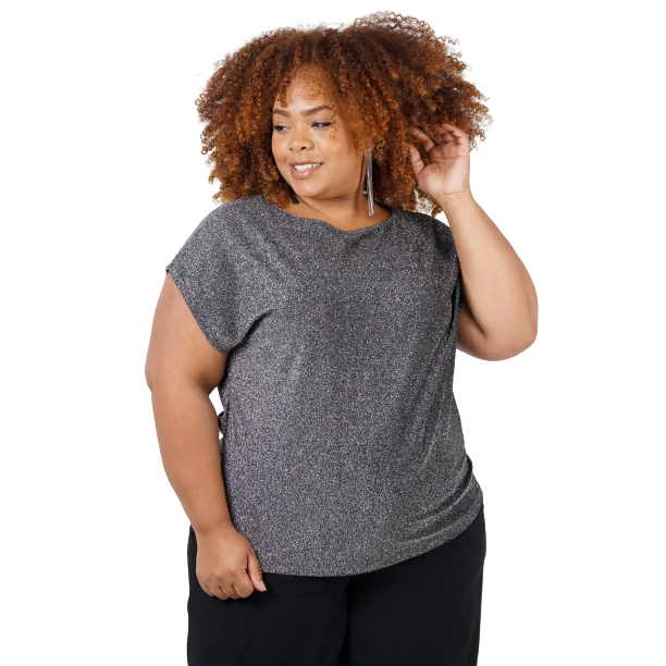 Blusa Feminina Plus Size com Brilho Lurex Metalizado Para Festas e
