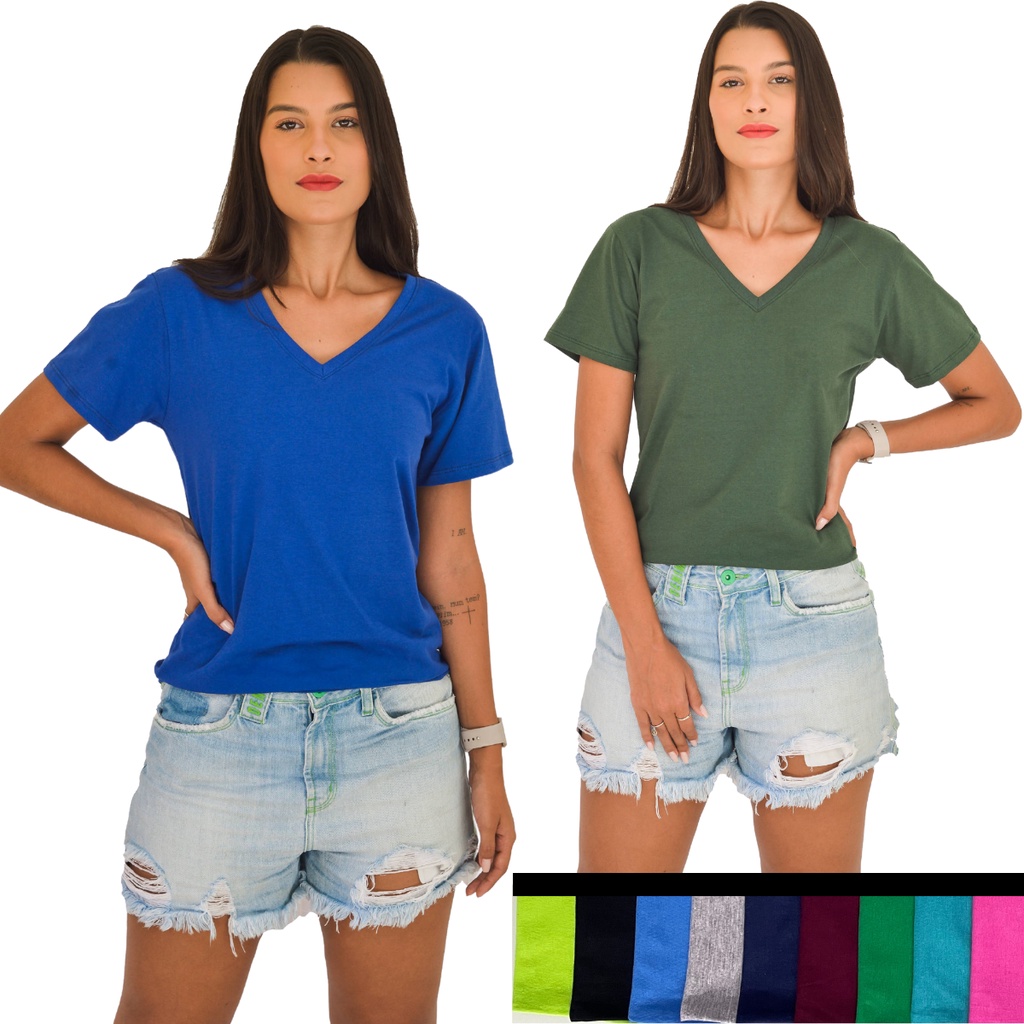 Blusa Feminina de Manga Gola V B sica Dia a Dia Malha 100