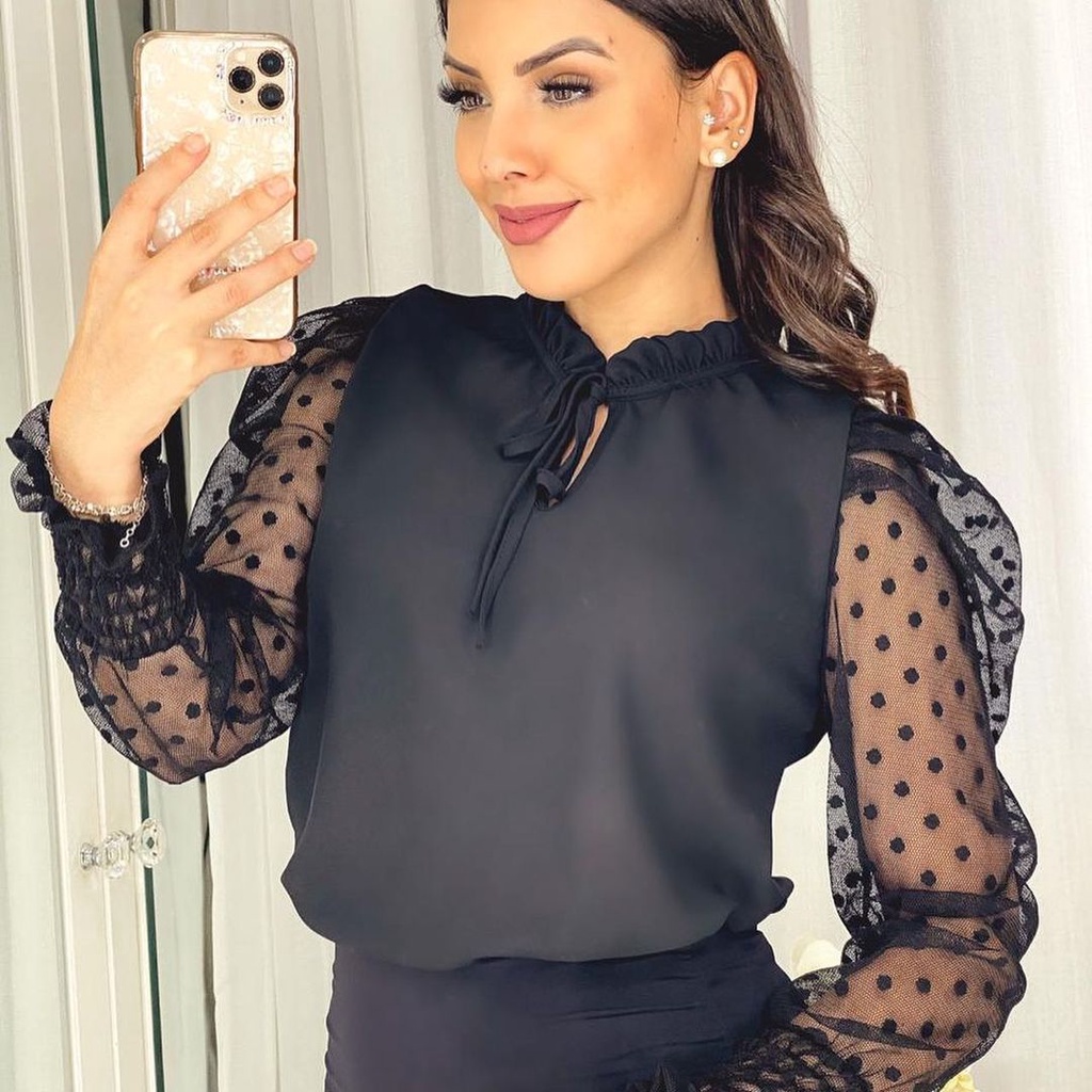 BLUSA CREPE MANGA LONGA PUNHO LASTEX Baoo Store