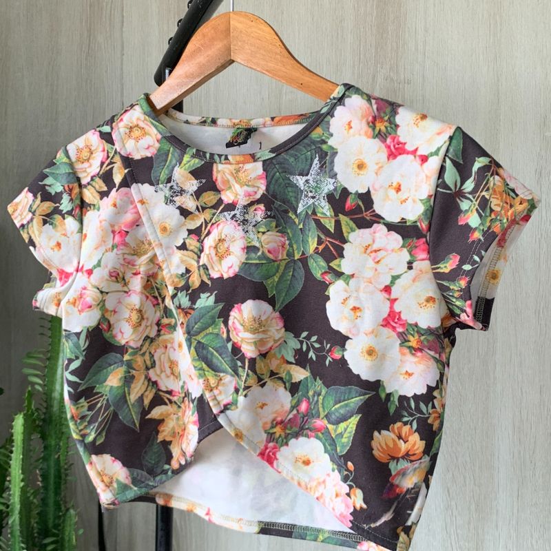 Cropped Feminino Floral da Coca Cola Manga Curta Tamanho P Blusa