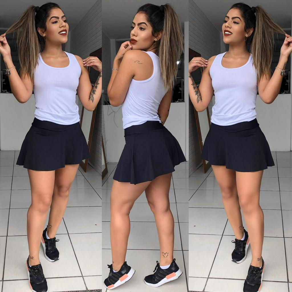 Short Saia 4 Esta es Liso Vies B sico Academia Fitness Feminino