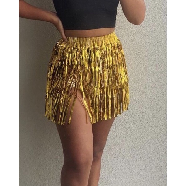 Saia Metalizada Franja Met lica Fantasia Carnaval Bloquinho