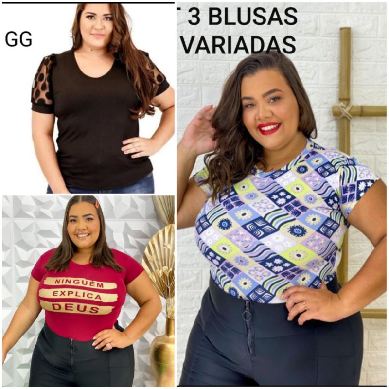 Blusa feminina GG kit 3 blusas evangelicas plus size tshirt