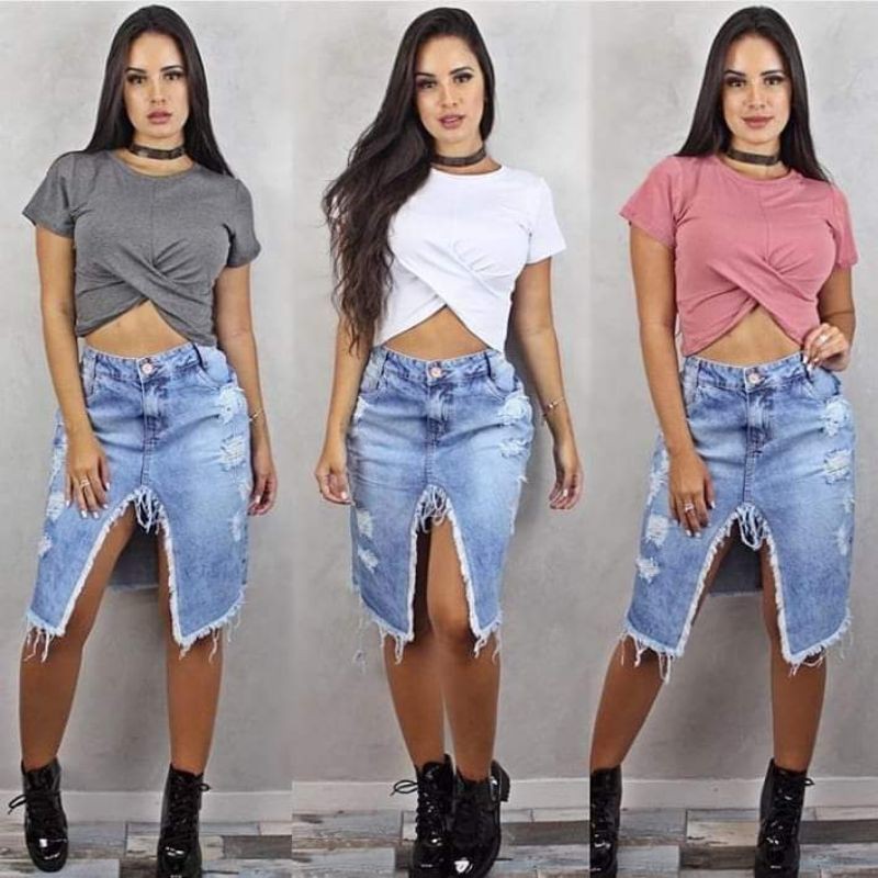 Saia jeans midi clearance com fenda frontal, DESAPEGO Saia jeans Midi Mais estilosa com fenda frontal n mero 36 blogueira clearance