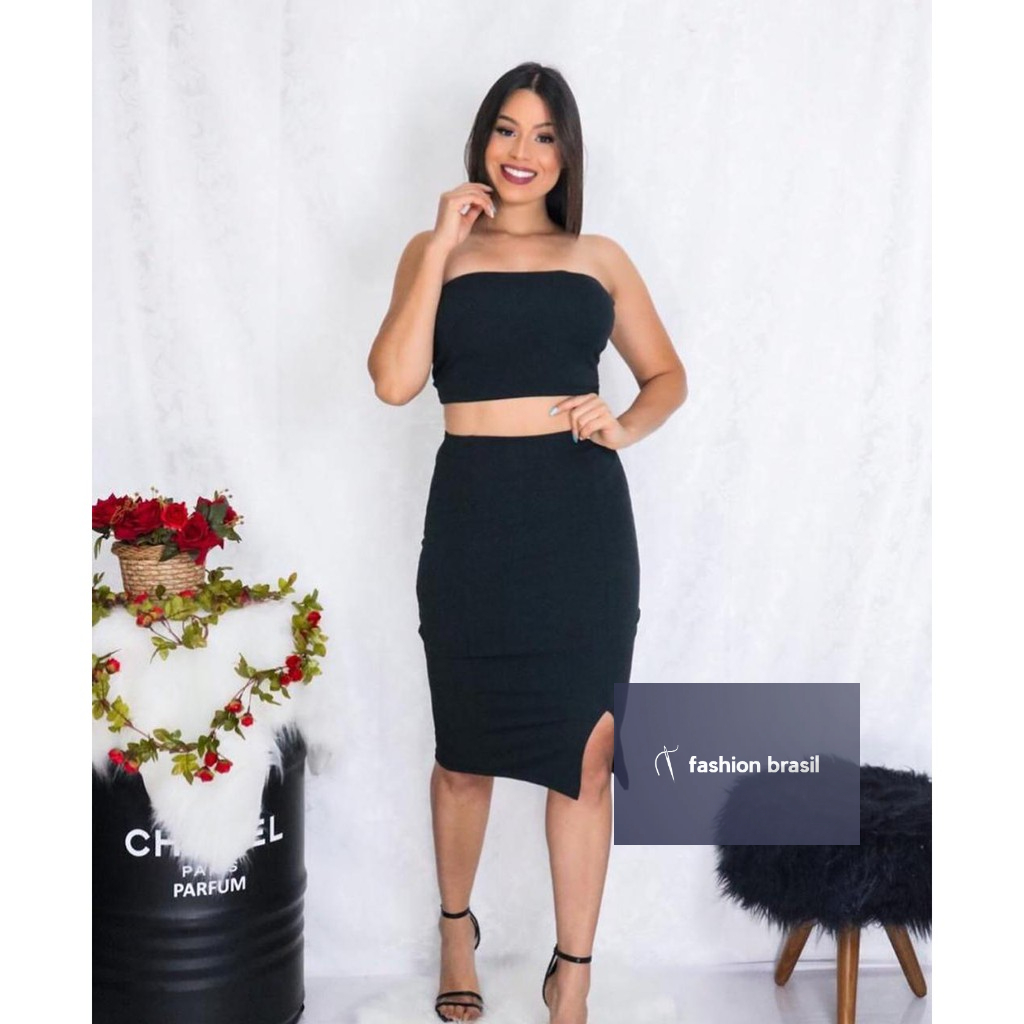 Saia Midi Fenda Coxa Canelada Colada Moda Feminina Shopee Brasil