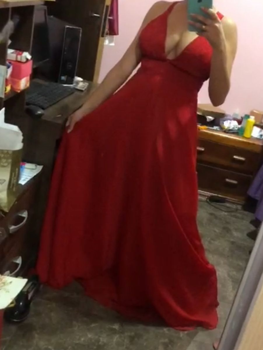 Vestido Longo Vermelho Madrinha Gestante Pr Casamento
