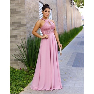 vestido de festa Ros longo madrinha de casamento noiva civil formanda gestante aniver batizado