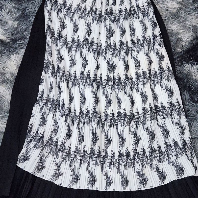 Hanna Boutique Saia plissada preta e branca e polo tricot