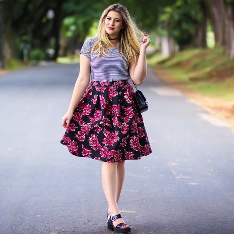 Saia midi god rodada evang lica florida em suplex R 84.90 cor