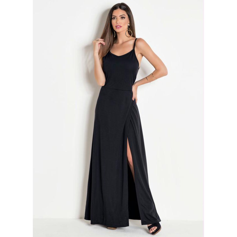Vestido preto longo clearance barato, Vestido Longo Preto Murau clearance