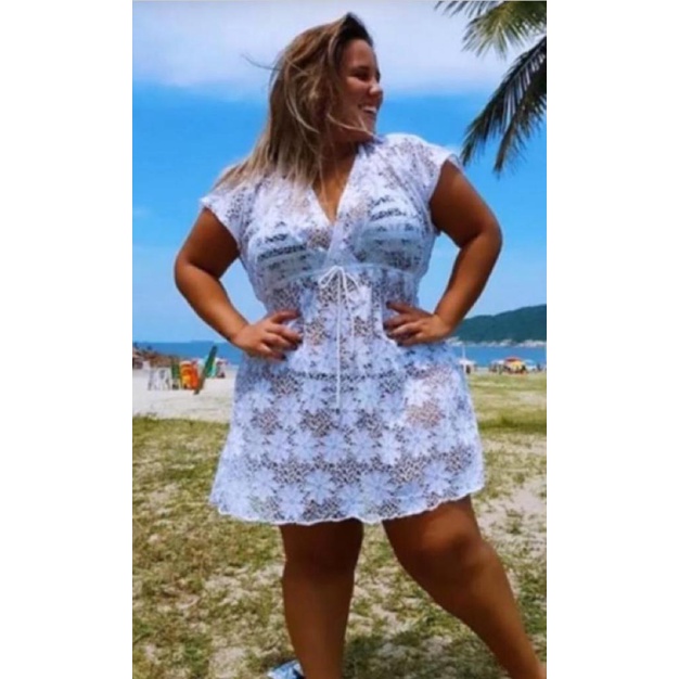 Sa da de praia Plus Size em renda arrast o Manga flare. Elo7
