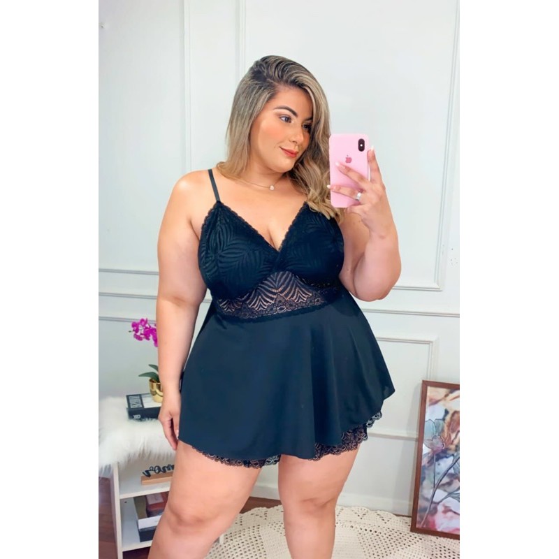 Kit Plus Size Com 05 Babydoll Liganete Moda Intima Roupa De Dormir Blusa Short