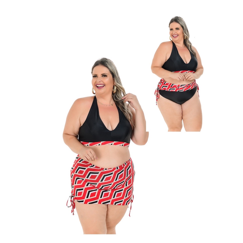 Biqu ni Sunquini Plus Size Com Saida de Praia Embutida E Bojo Remov vel Do Tam 46 Ao 60