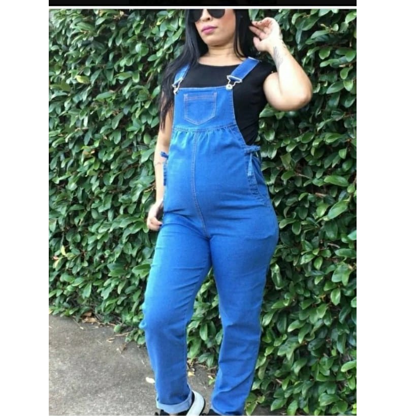 Macac o Jeans Jardineira Gestante Tradicional Lindo Gravida