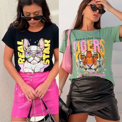 Pacote Kit 10 Blusinhas Camisetas Tshirt Algod o Viscolycra Estampas Atacado Sortido Para Revenda Feminina