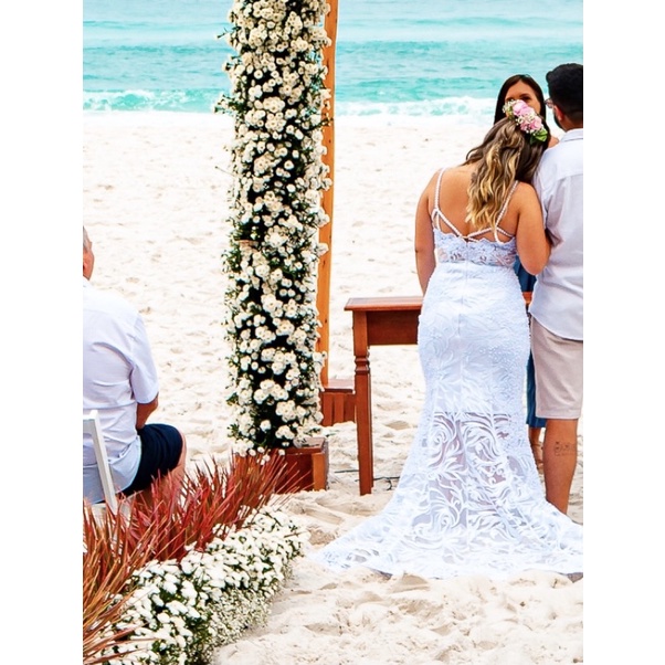 Vestido Samantha Branco Foliage 2x1 Barbara Melo