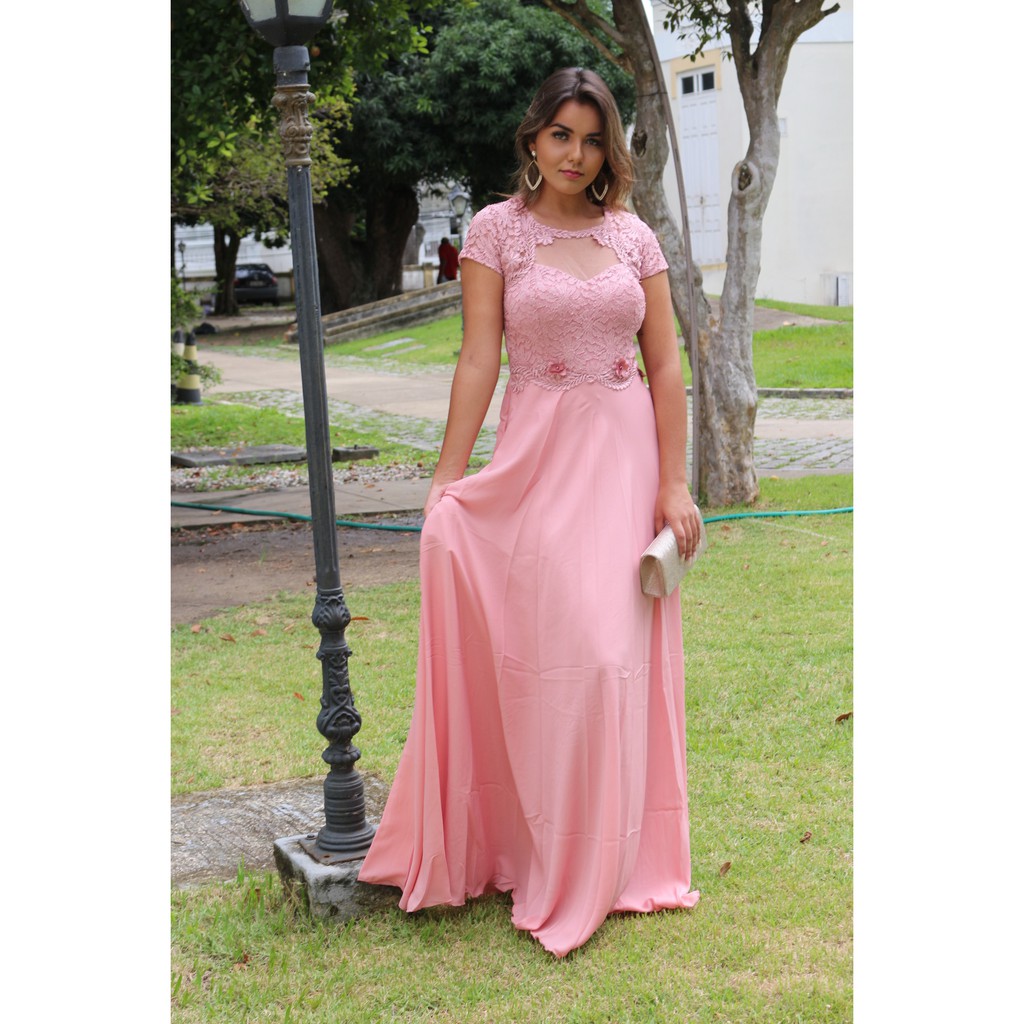 vestido longo senhoras manguinha moda festa casamento civil noivas m e de noivos madrinhas ros formaturas