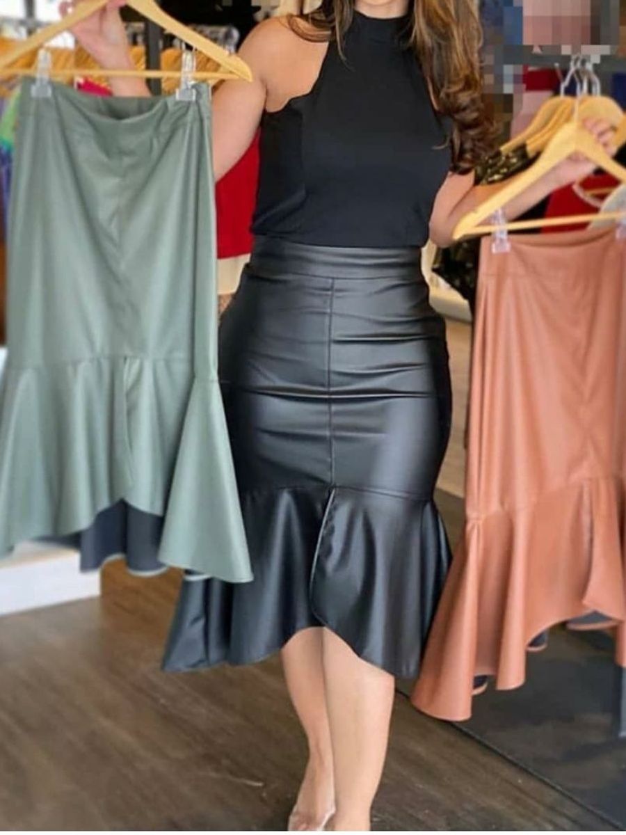 Sa a Midi Feminino Couro Fake Ecol gico Tend ncia Outono inverno 2020 Saia Feminina Kleide Modas Nunca Usado 41644337 enjoei