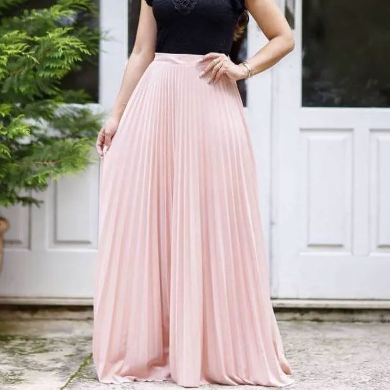 Saia Longa Plissada Chiffon Fluid Rosa Infini Fashion