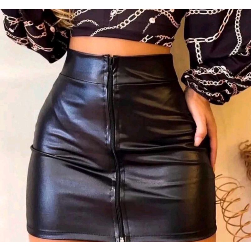 Saia couro com clearance ziper na frente