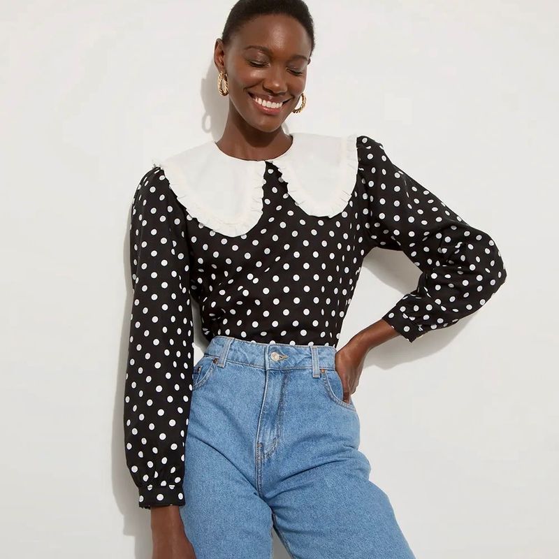 Camisa Cropped Po Gola Boneca Camisa Feminina Cea Usado