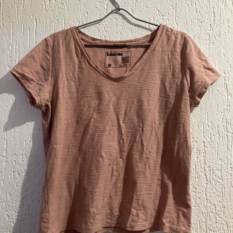 Camiseta B sica Rose Gola V Camiseta Feminina C A Usado 85177665