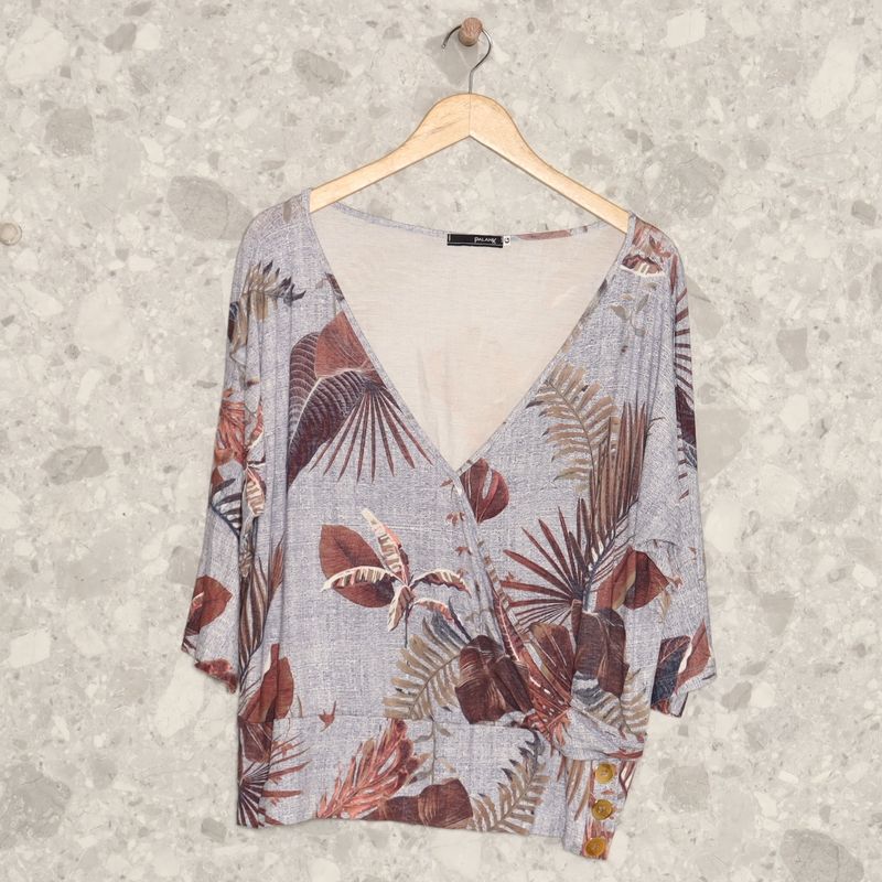 Blusa Azul Mescla Folhagem Palank Blusa Feminina Palank Usado
