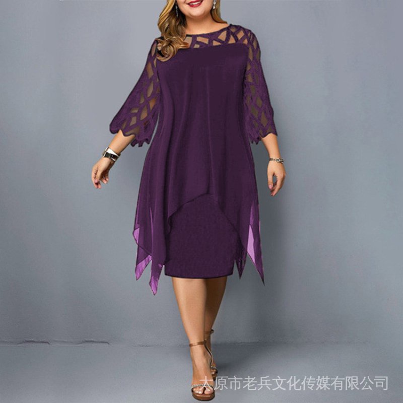 2022 plus size new Elegante Malha Vestidos De Renda Das Mulheres sexy midi Vestido De Festa Solto casual Oco out oversize fiesta